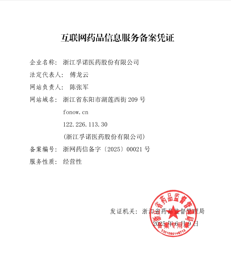 CopyRight © 2018 - 2025 浙江孚諾醫(yī)藥股份有限公司 All Rights Reserved.
